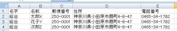 バリアブル印刷に使う宛名データはExcelでの作成をお願いいたします。バージョンは、問いませんが、住所、名字、名前、郵便番号は、セル別に分けていただくと助かります。