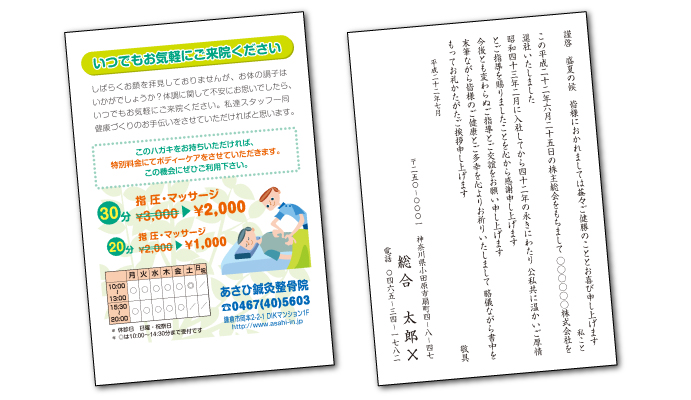近隣の地域の皆様の挨拶ハガキからDMまで、幅広く制作しております。