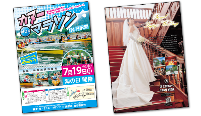 弊社では箱根・小田原を中心に、ホテルのパンフレット、リーフレット、チラシや伝票、地方自治体の広報誌などを主に制作させていただいております。この他にも自動車ディーラーのチラシなどを制作したり、かなり幅広く、地元の貢献を目指しつつ、なんやかんやでやってます。